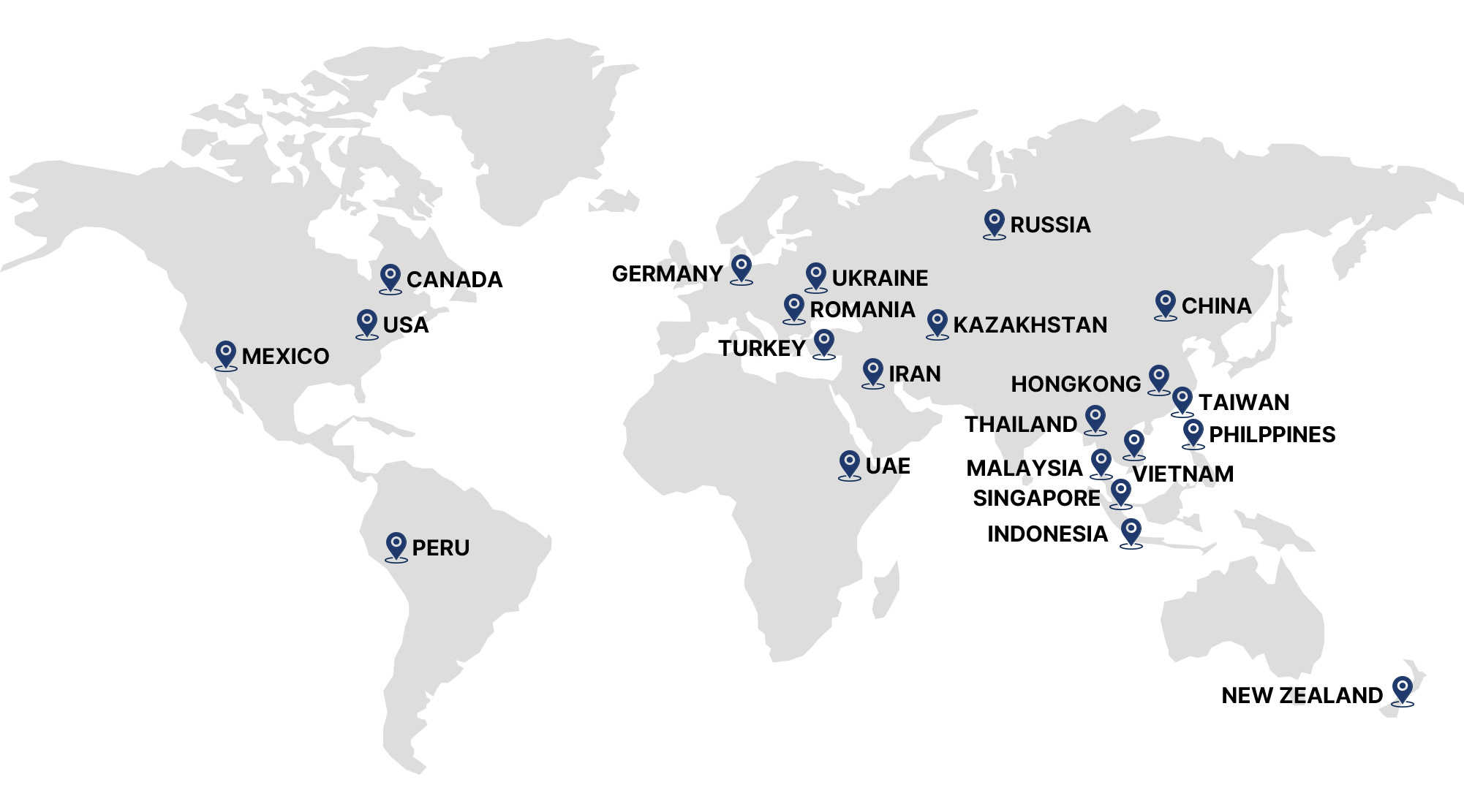 1983년 초반부터 해외시장 개척에 주력하여 현재 20여개 국가에 수출 중 이며,